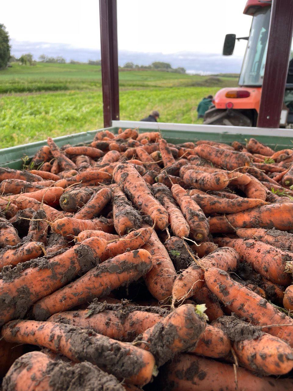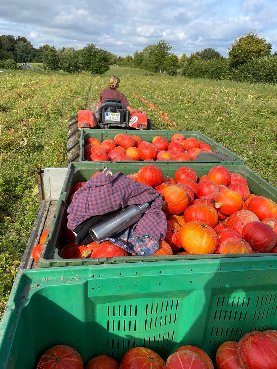 Wenn der Herbstnebel morgens über den Feldern in Medewege liegt, ist der Zeitpunkt für eine der letzten großen Ernten des Jahres gekommen. Die Gärtnerinnen und Gärtner holen jetzt die Kürbisse vom Feld – prall, farbenfroh und voller Herbstgeschmack. Auch die Möhren werden frisch aus der Erde gezogen, besonders süß durch die kühleren Nächte.